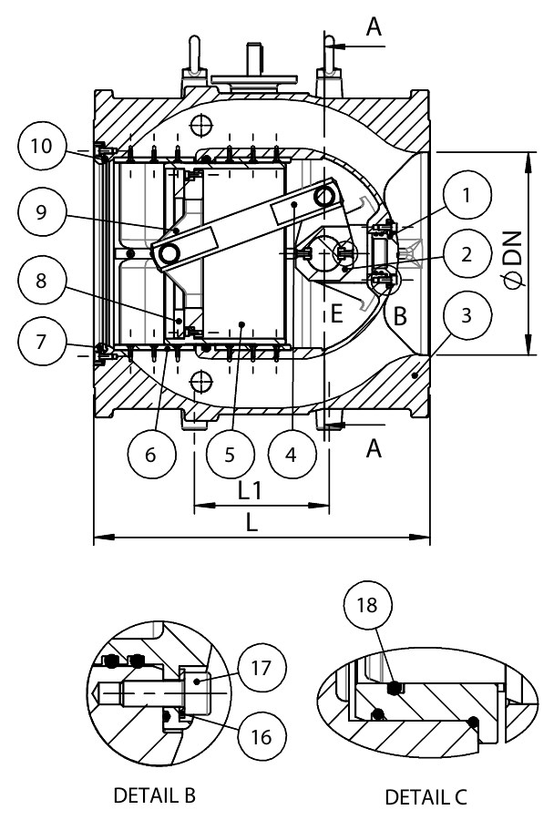 - Low head loss coefficient in fully open position due to optimized internal body shape